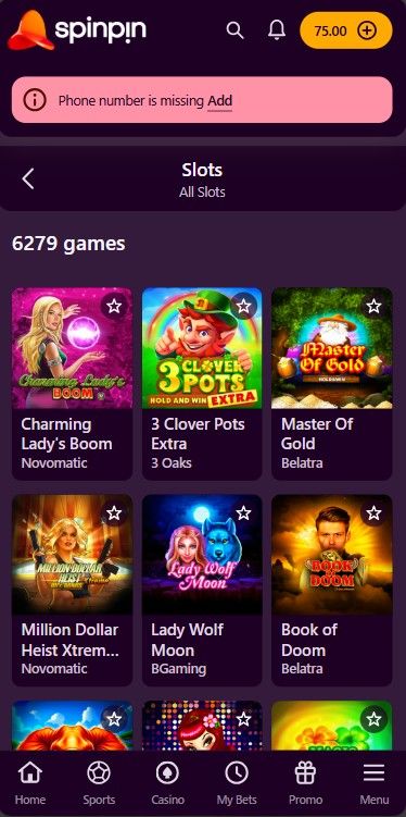 Spinpin Casino keeps things simple with a clean and easy-to-navigate interface that makes switching between slots, live games, and instant win titles feel smooth. The layout is straightforward, with clearly defined sections that reduce clutter and help players move around the platform without confusion. Whether browsing the casino lobby or checking account settings, everything feels accessible within just a few clicks.