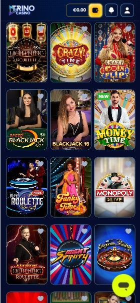 The live casino section is one of Trino’s strongest verticals, with 1,200+ games powered by top-tier providers such as Evolution Gaming, Pragmatic Play Live, and Ezugi. Streams are stable, interfaces are polished, and the variety of the tables is impressive.