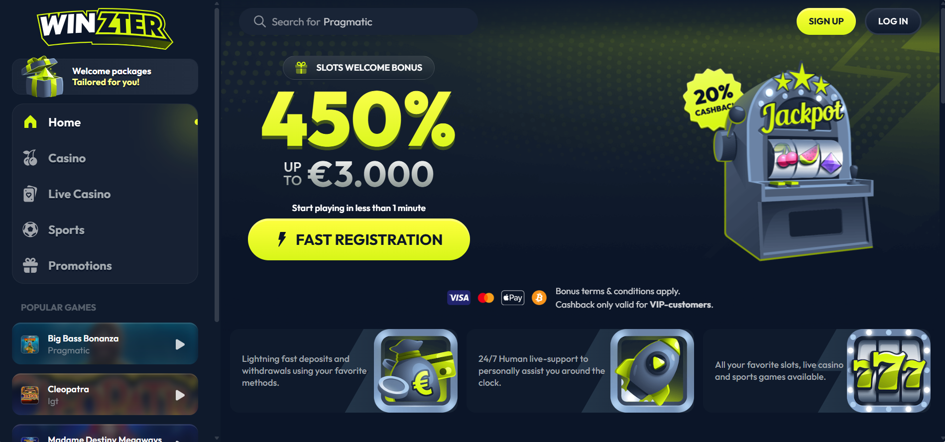 The strongest game category at Winzter is slots, and that becomes obvious when you click on the casino lobby. We found a good balance between new releases and familiar favourites, all supplied by trusted studios, such as Microgaming, Novomatic, Playson, and EGT. Navigation is smooth, and filters make it easy to jump between slot types without wasting time.