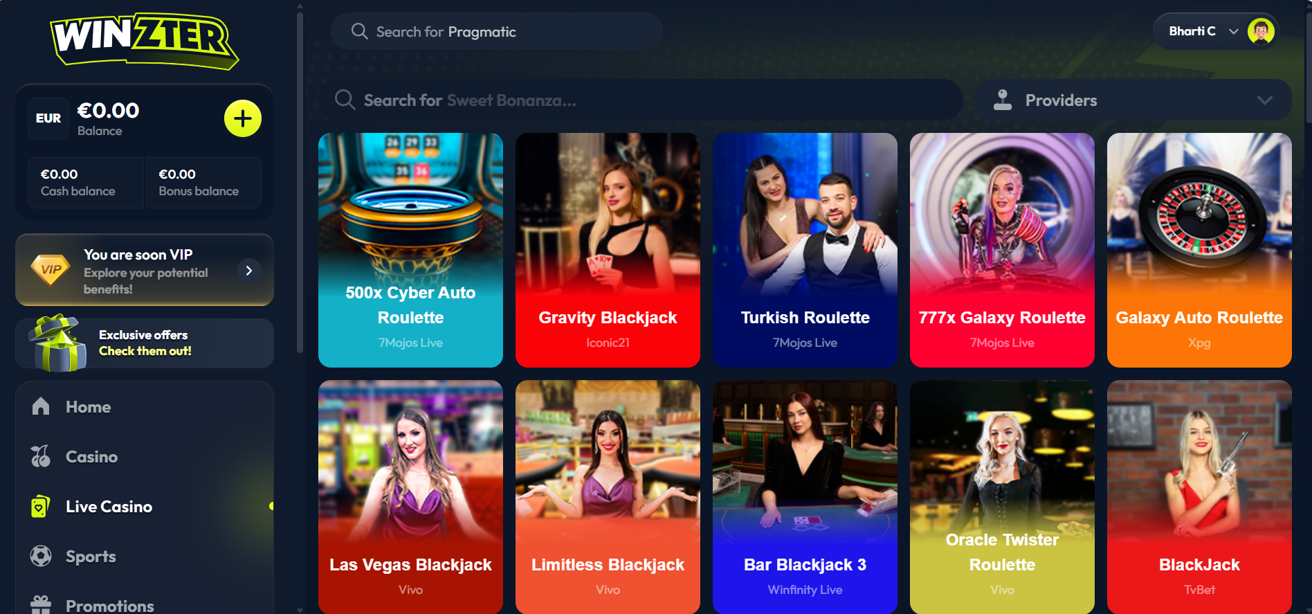 Winzter Casino has a strong live dealer section that focuses on choice and stream quality. We counted more than 70 live titles, covering blackjack, roulette, baccarat, and a few fast-paced game show-style options. The live lobby is powered by a wide mix of studios, including Vivo, TVBet, Winfinity, 7Mojos, ICONIC21, and XPG, which keeps the line-up varied.